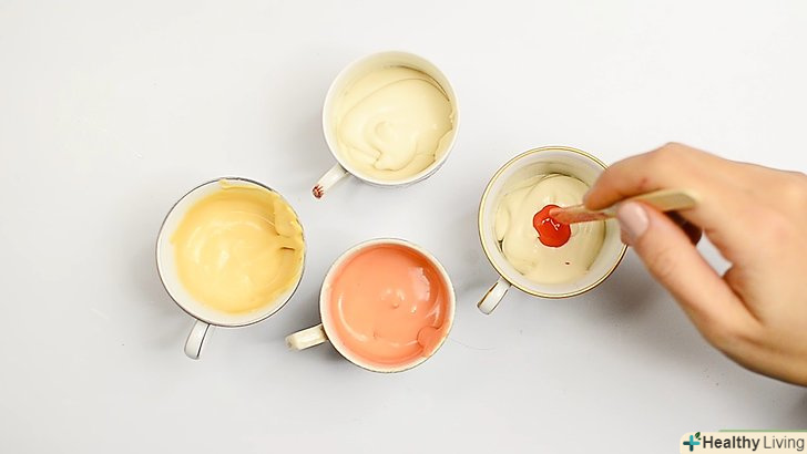 - Змішайте дев'ять частин червоного і десять частин жовтого барвника. Разом вони додадуть глазурі рожево-персиковий колір. [4]