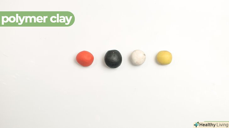 Приготуйте кілька шматочків глини різних кольорів. в ідеалі, вам знадобиться два різних відтінки червоної глини і два — жовтої, один шматочок білої глини, один прозорий і один чорний.- Краще, якщо один з червоних зразків буде теплим, з відтінком оранжевого, а інший — холодним, з фіолетовим відтінком.