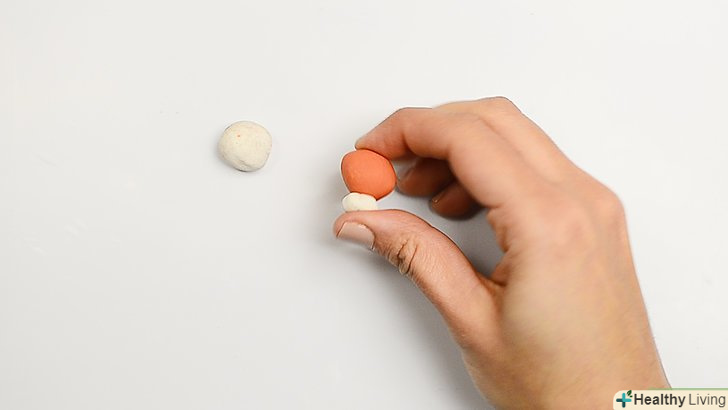 Зробіть Помаранчевий світліше. створіть ще два однакових зразка особливо вподобаного вам оранжевого кольору. Зробити помаранчеву глину світліше можна двома способами. Якщо використовувати два зразки одного і того ж відтінку, вам буде легше порівняти отримані результати.- Додайте невеликий шматочок білої глини до одного з помаранчевих зразків. Розминайте глину, поки кольори повністю не змішаються. У вас повинен вийти більш світлий і менш яскравий помаранчевий.