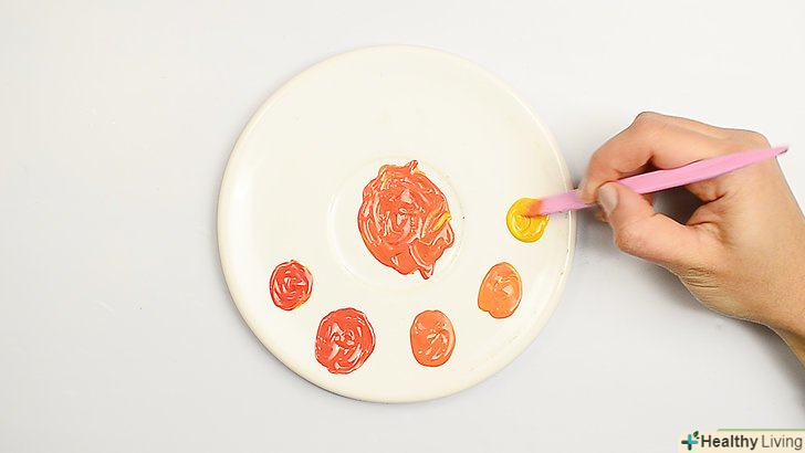 Змішайте червоний і жовтий. [1] Помаранчевий-вторинний колір. Це означає, що він виходить при змішуванні двох первинних (основних) кольорів, червоного і жовтого.- Основні кольори існують самі по собі, їх неможливо отримати шляхом змішування інших кольорів. Три основні кольори-це червоний, жовтий і синій. Для того щоб отримати помаранчевий, вам знадобиться два з них: червоний і жовтий.