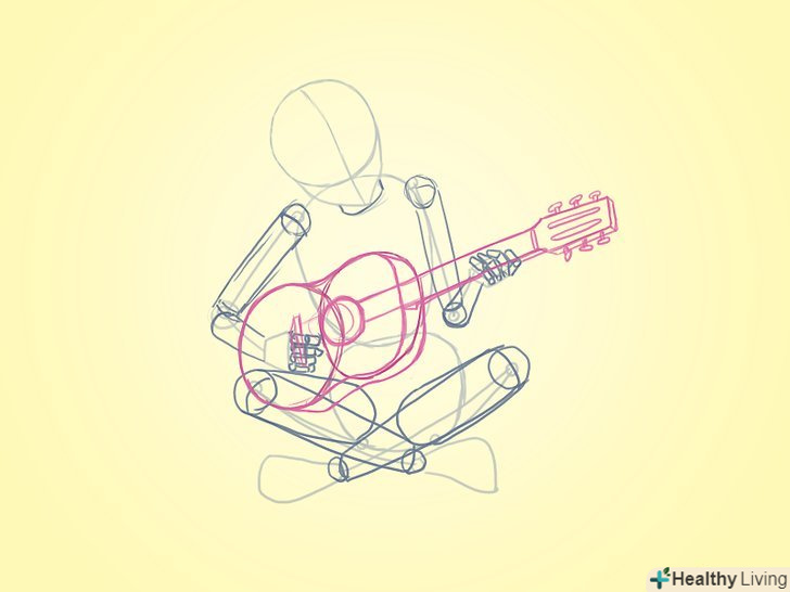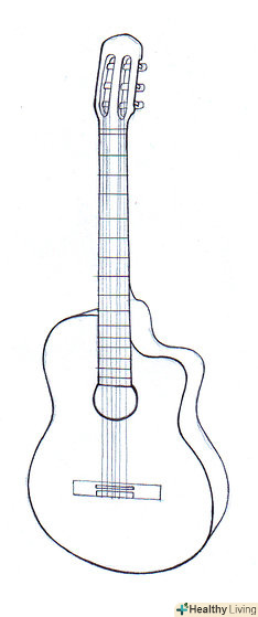 Обведіть контури гітари. додайте деталі — струни, наприклад.