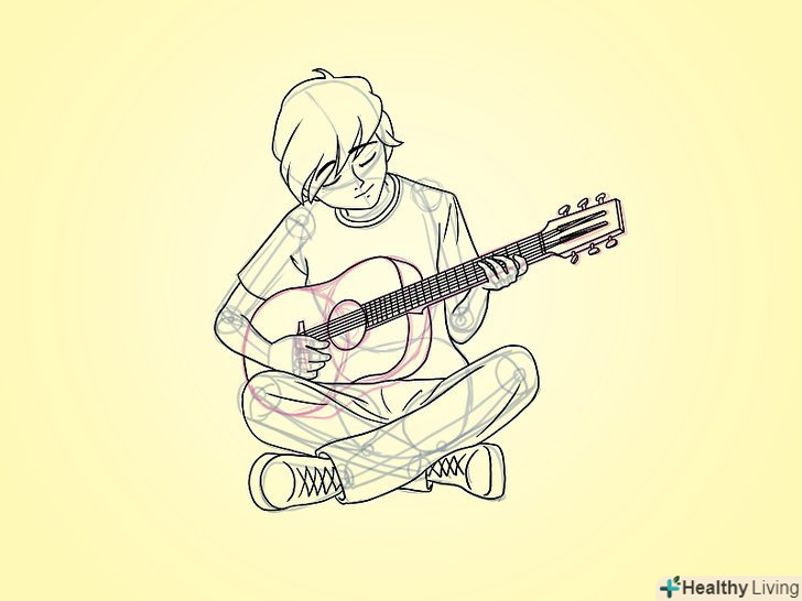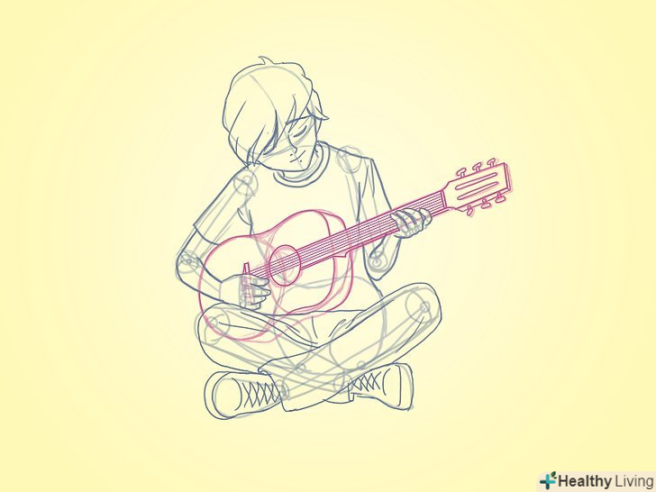 Намалюйте додаткові деталі обличчя, одягу та гітари.