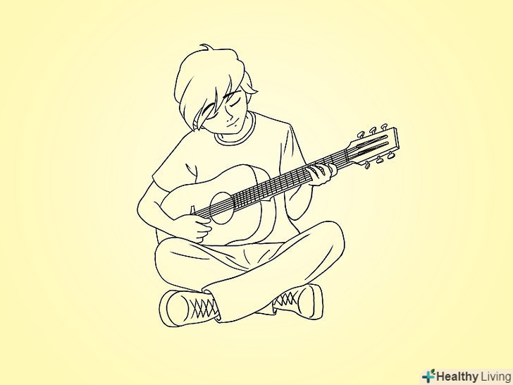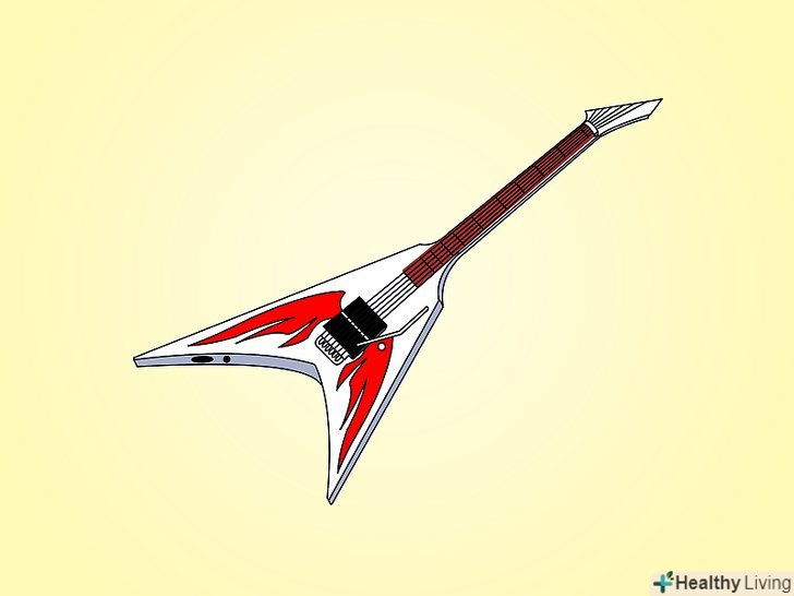 Обведіть контури гітари. додайте деталі-струни і кнопки.