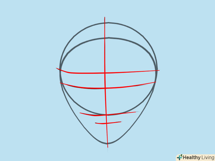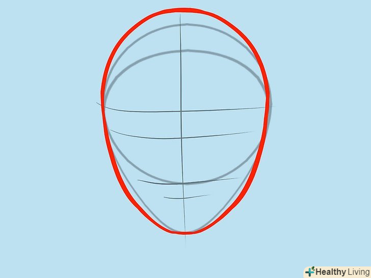 Намалюйте два овали, які формують цілу форму яйця. форма яйця зазвичай використовується для начерку контурів голови.
