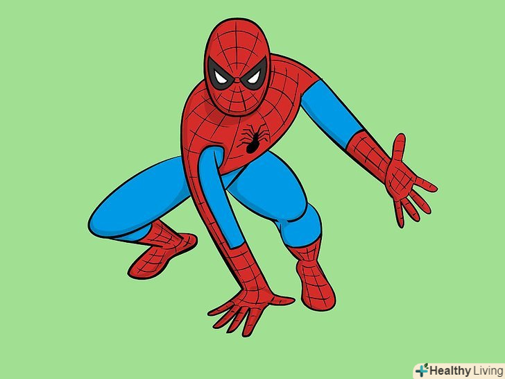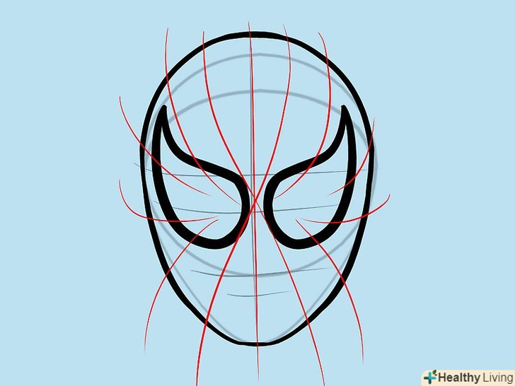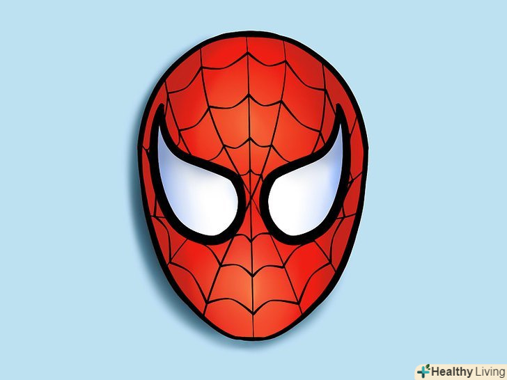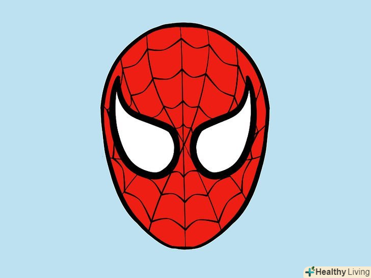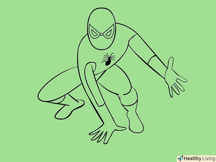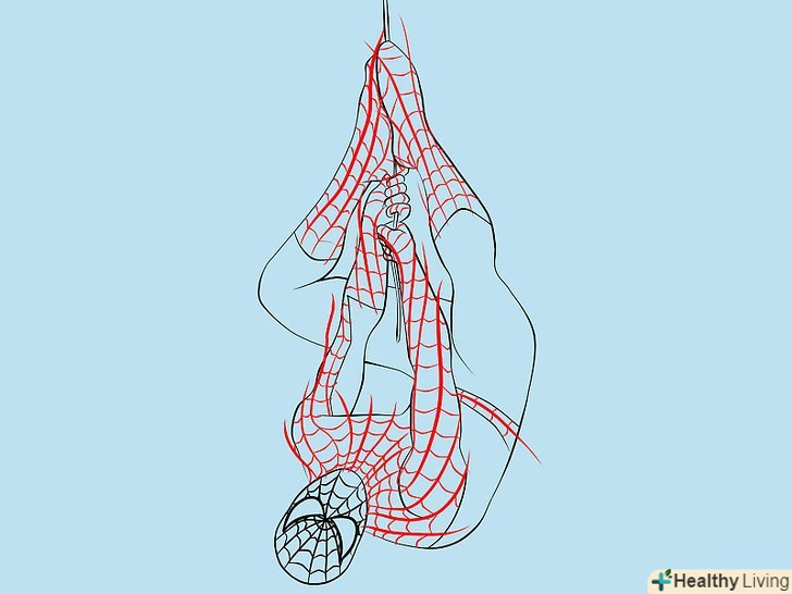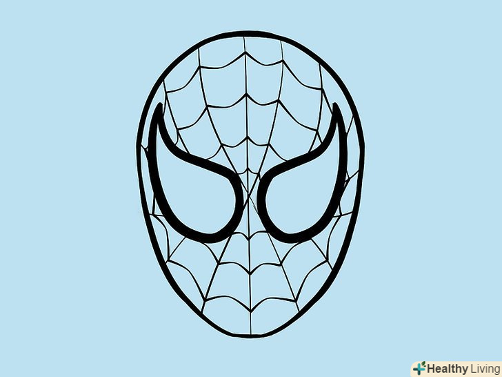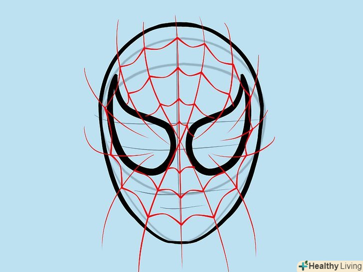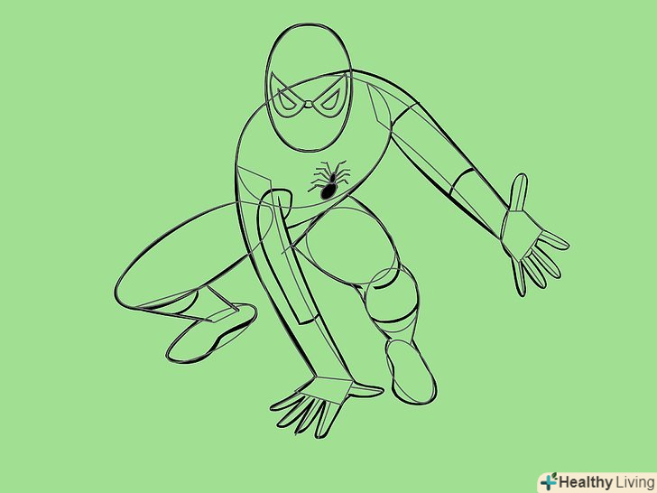 Додайте деталі його костюма і почніть малювати павутину на його масці. Середина павутини на його масці знаходиться у нього між очей.