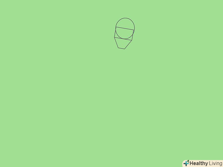 Намалюйте прямокутник на похилій осі овалу від центру овалу до нижнього краю. намалюйте трикутник зі зрізаним кінчиком від основної лінії прямокутника для щелепи і підборіддя, тим самим сформувавши голову.