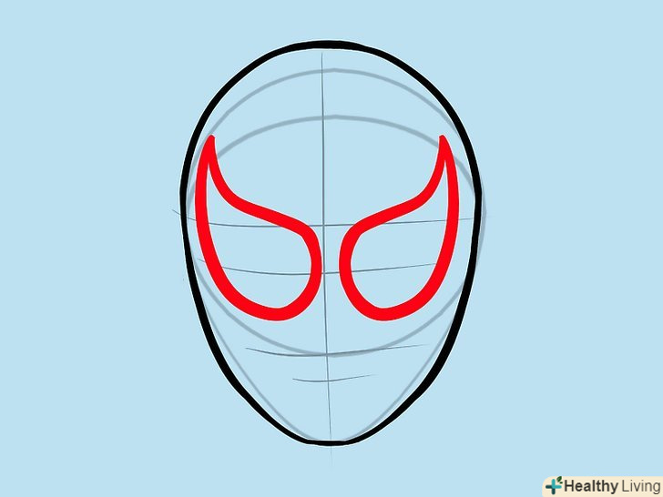 Намалюйте очі. як уже зазначалося, вираз очей Людини-Павука залежить від його емоцій. Чим вже намальовані очі, тим більше сердитий людина-павук.