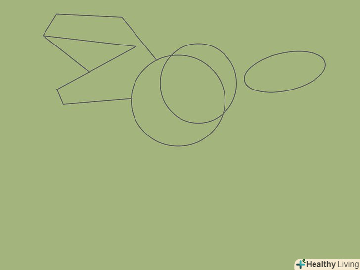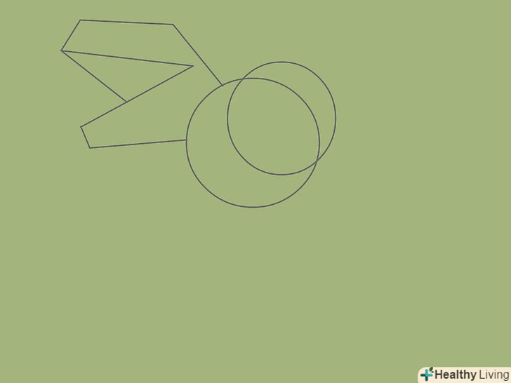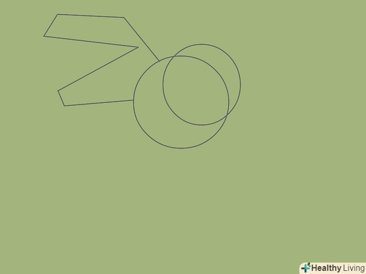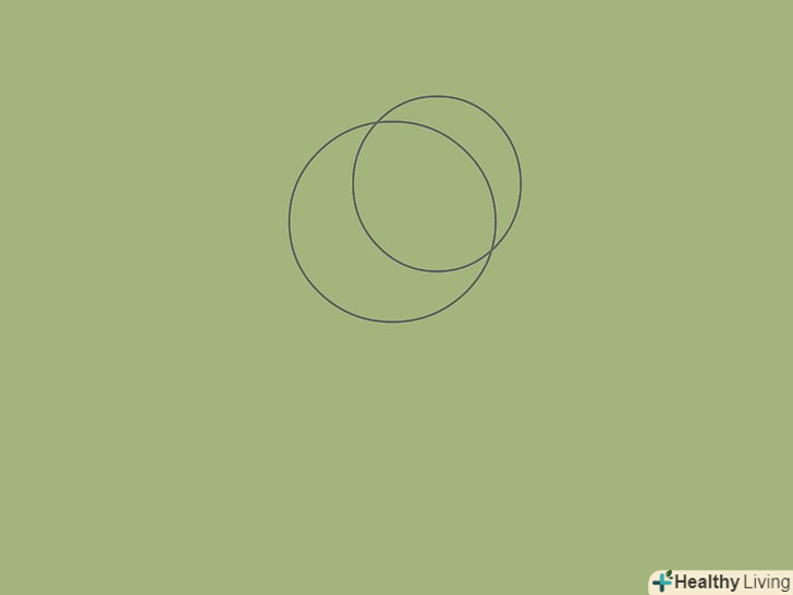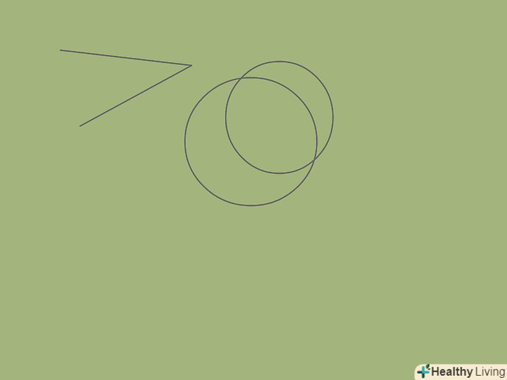 Для початку проведіть два пересічних кола для тулуба. насамперед намалюйте на аркуші паперу велике коло. Потім накресліть друге коло, який перетинає верхню праву частину першого. Розташуйте кола близько один до одного, щоб тулуб залишалося досить компактним, але об'ємним. [10]- Зробіть друге коло трохи меншим, ніж перший.