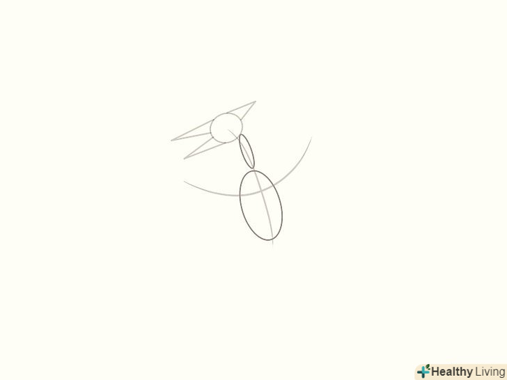 Прірісуйте два тонких овалу над спиною, щоб позначити шию і тулуб. додайте один тонкий вертикальний овал уздовж верхньої частини лінії спини для шиї. Він повинен стосуватися голови. Потім намалюйте трохи ширший і довгий овал внизу лінії спини. Почніть його під крилами і залиште трохи місця в кінці спини. [23]