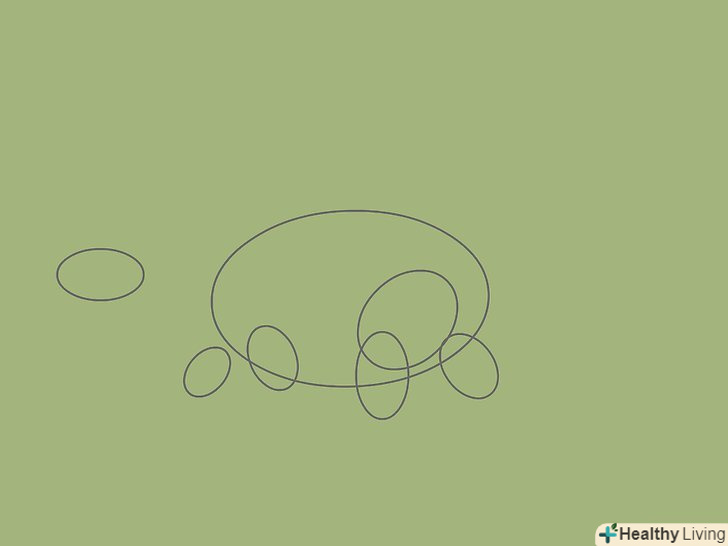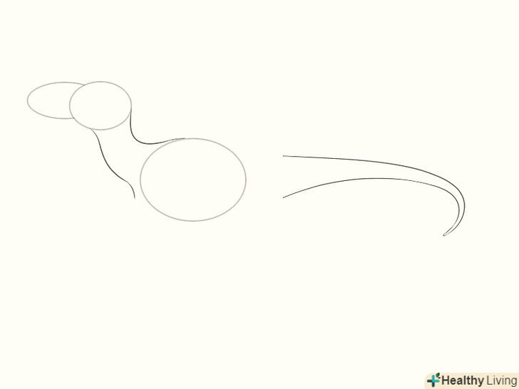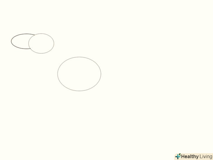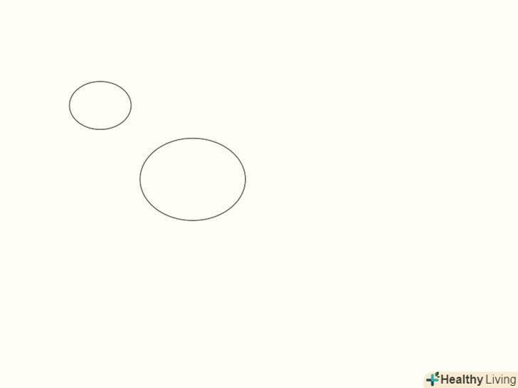 Для початку намалюйте два кола — це будуть голова і тулуб. намалюйте більше коло для тулуба. Потім додайте коло середньої величини біля верхньої лівої сторони тулуба. Залиште між цими колами трохи місця для шиї, яку ви намалюєте пізніше. [28]- Зовсім не обов'язково малювати ідеальні кола, вони можуть бути трохи сплюснутими.