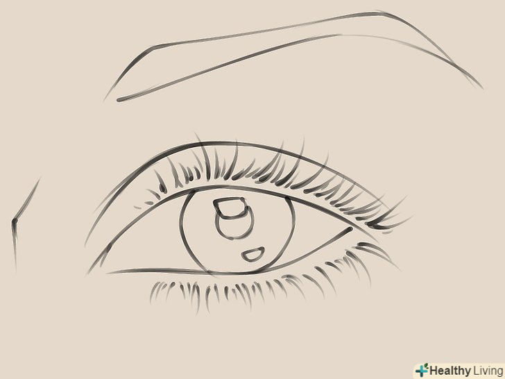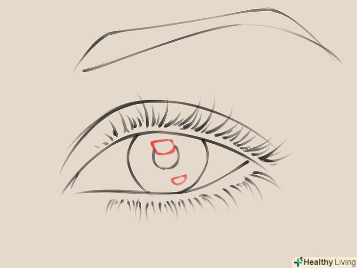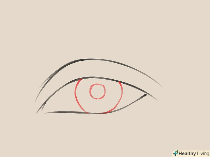 Намалюйте «коло» очі: він складається з райдужної оболонки (зовнішнє кільце) і зіниці (чорнота в середині). Пам'ятайте цю деталь: райдужка повністю не показується, вона частково закривається століттям, що дає відчуття глибини.