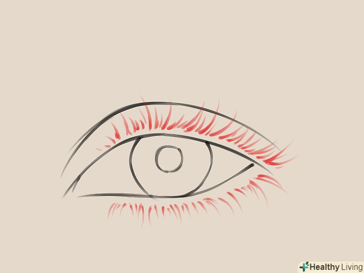 Намалюйте вії. майте на увазі, ви повинні намалювати їх по краях обох повік, більше на нижній, ніж на верхній. Намагайтеся тримати однакову відстань між ними і зробити їх приблизно під одним кутом. Намалюйте верхні вії довше нижніх.