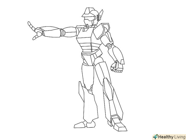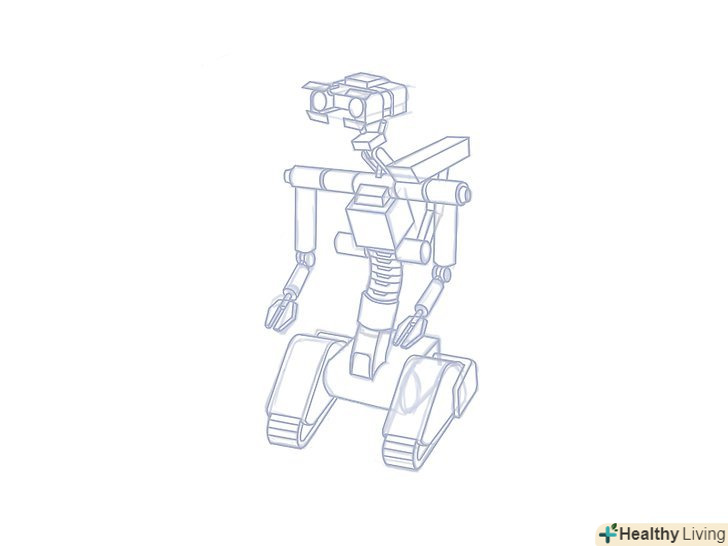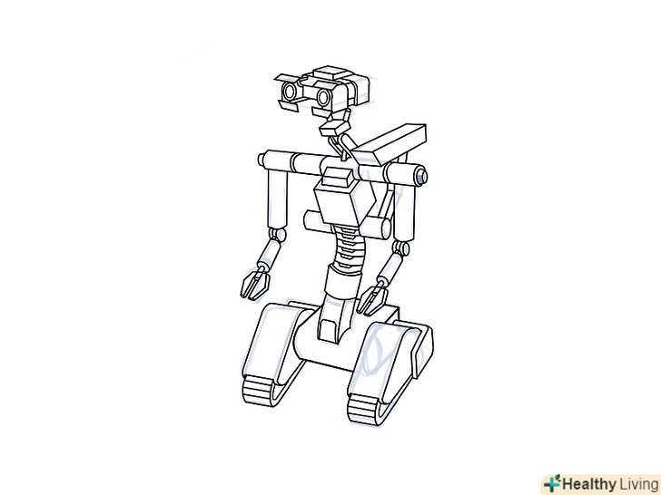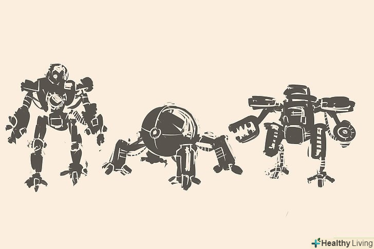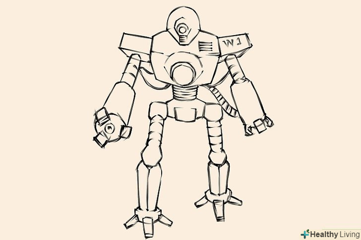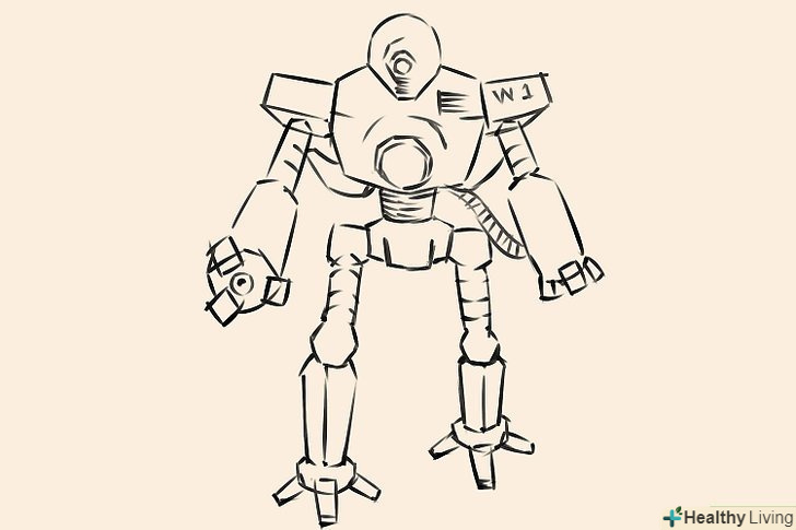 Зробіть кілька швидких ескізів роботів. накидайте кілька різних силуетів, щоб наочно представити свої ідеї і вирішити, якого робота ви хочете намалювати. Це може бути чотириногий робот, схожий на якусь тварину, робот бойового типу або простий робот для домашнього господарства.