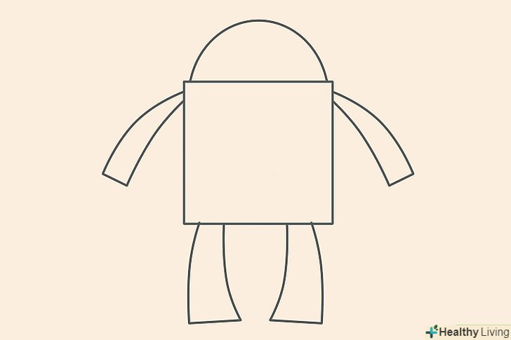 Намалюйте тіло і голову. для тулуба використовуйте квадрат, потім додайте до нього дугу зверху, яка буде головою.