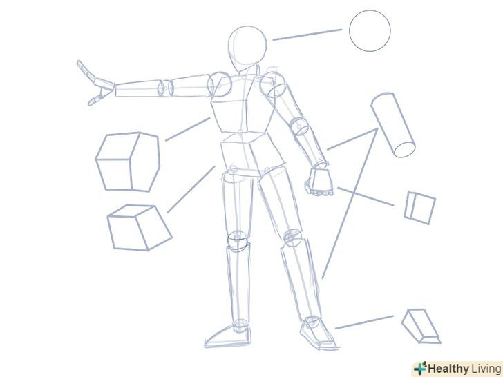 Використовуйте тривимірні фігури, такі як циліндри, призми і кулі, щоб намітити частини тіла.