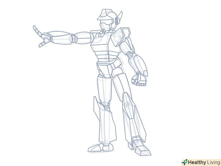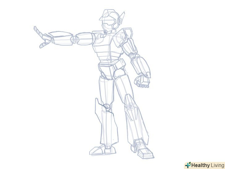 Зітріть допоміжні лінії і додайте побільше таких подробиць, як дроти, кабелі, заклепки, механічні деталі дрібниці на голові і тулуб тощо.