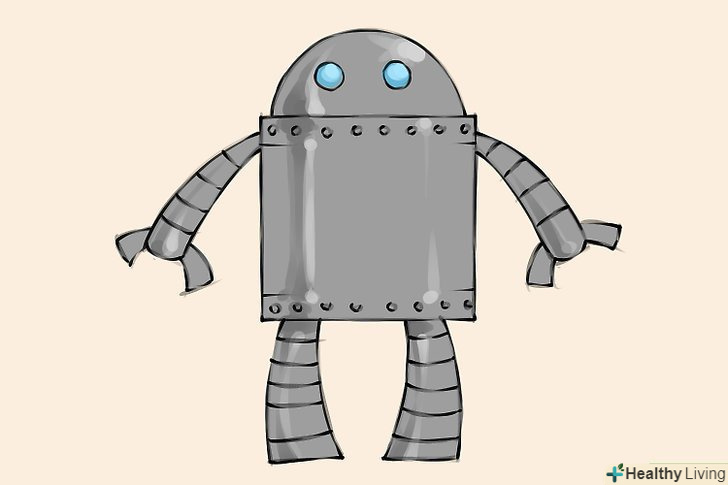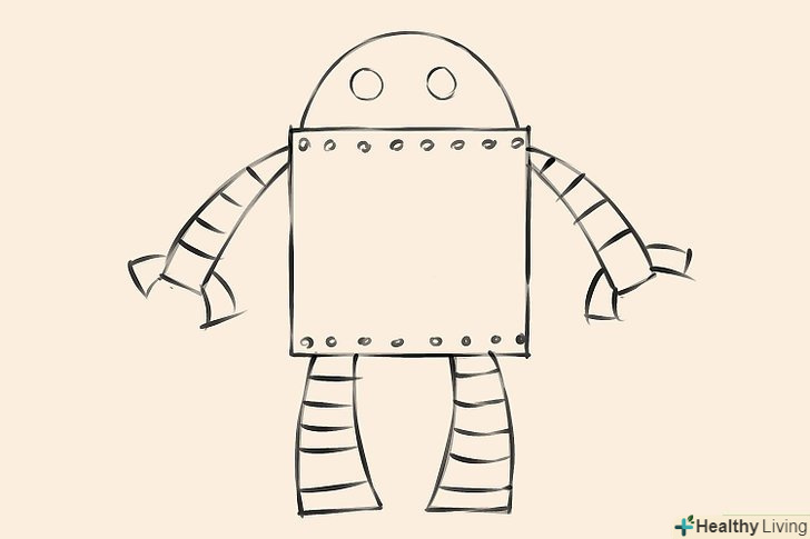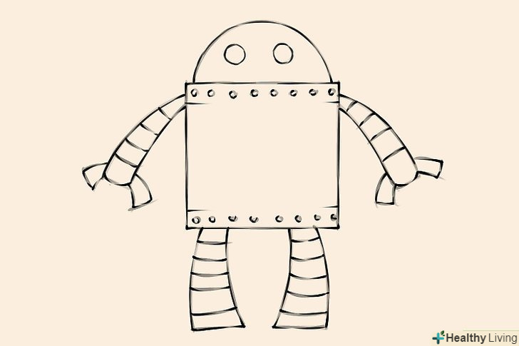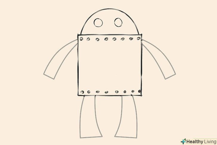 Займіться дизайном свого робота. намалюйте маленькі кружечки уздовж верхнього і нижнього краю тулуба - вони будуть зображувати Болти.