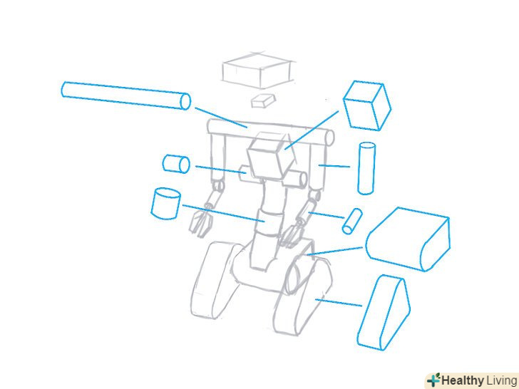 Намітьте загальні обриси робота, використовуючи різні тривимірні фігури (різні призми, паралелепіпеди, циліндри і так далі).