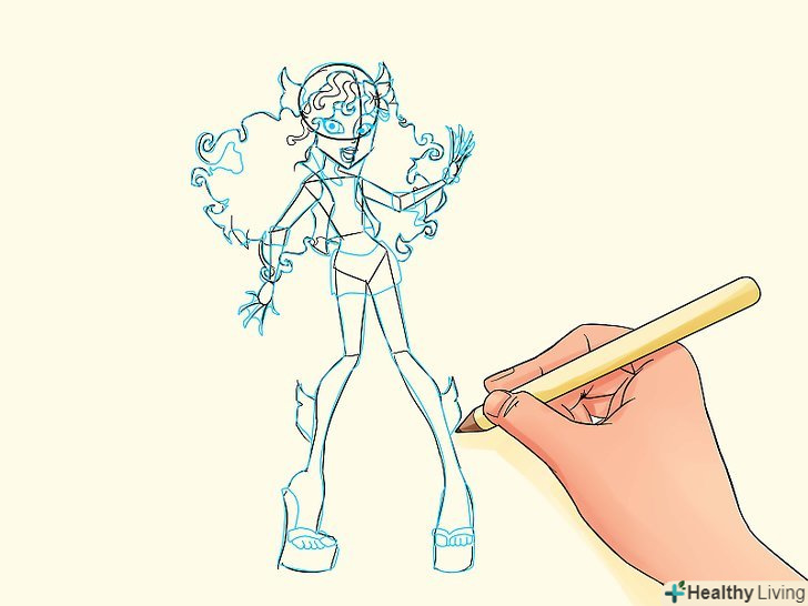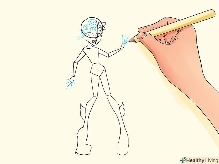 Намалюйте кінцівки і стегна.- Для кінцівок і ніг просто намалюйте кілька ліній. Все залежить від розсуду художника.