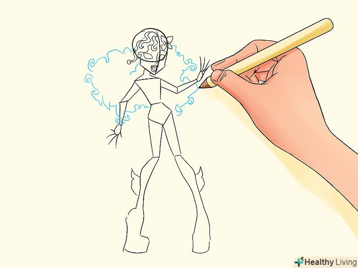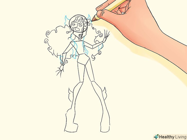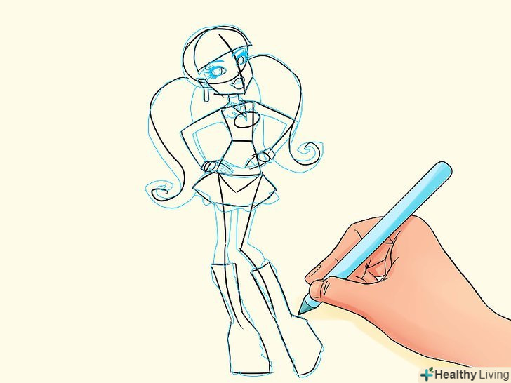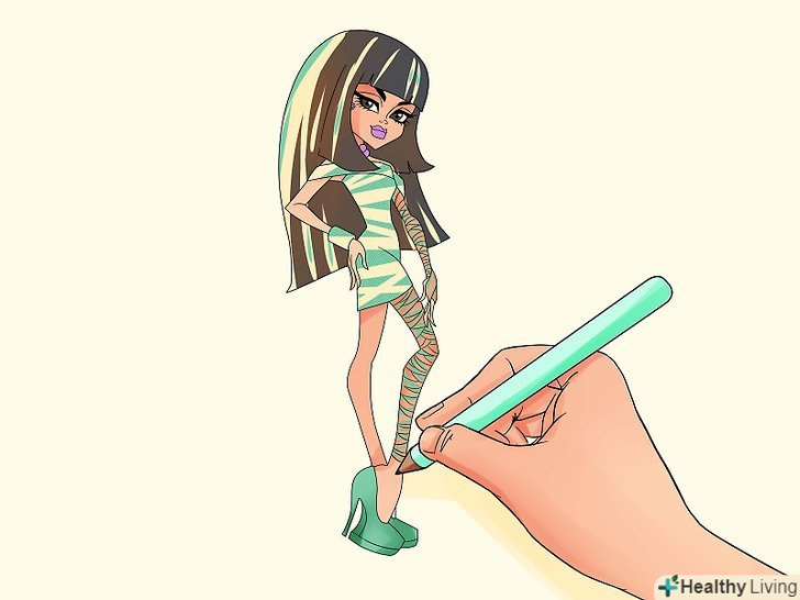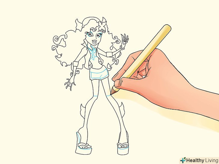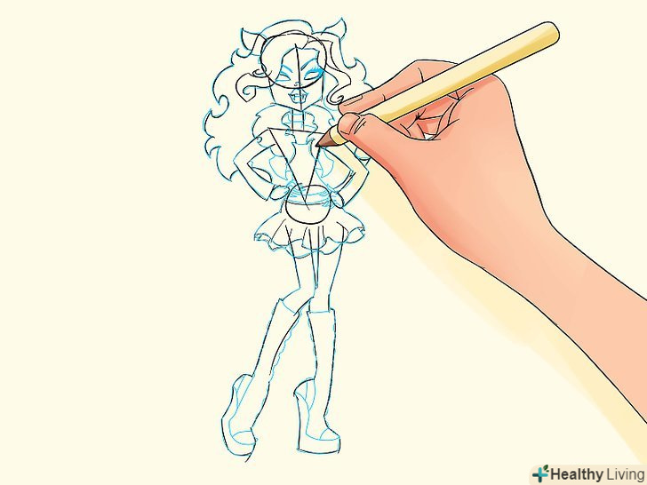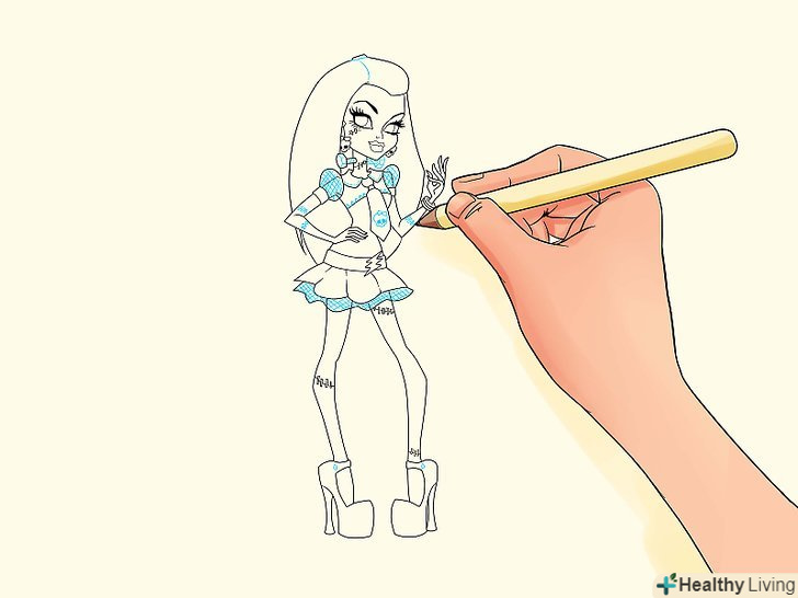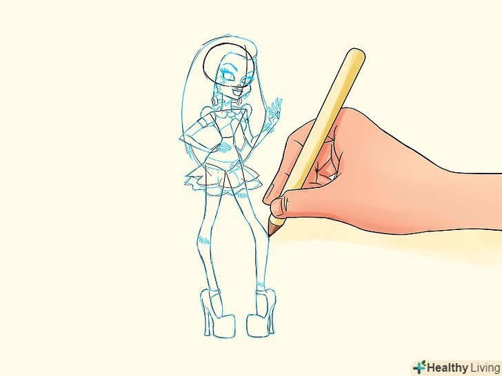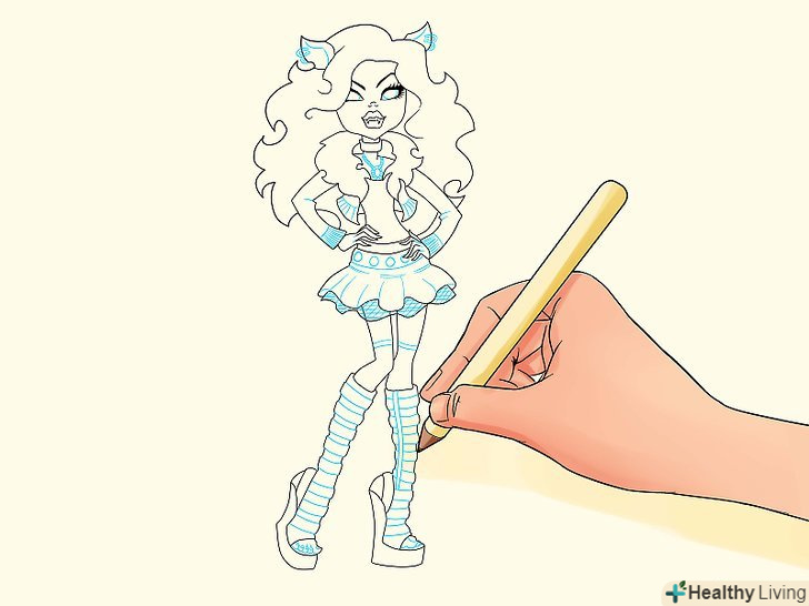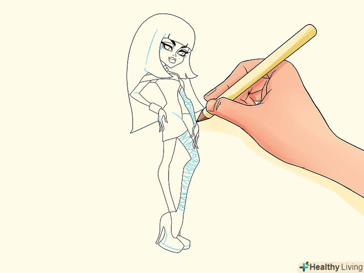 - Постарайтеся додати більше при необхідності. Не бійтеся додавати більше ліній, ніж потрібно. Можете додати багато дрібничок на її одязі.