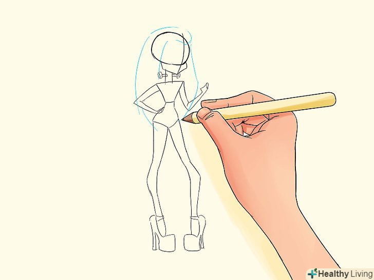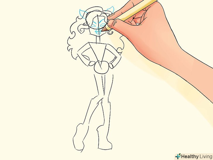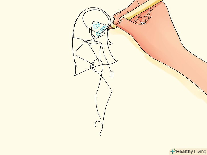 Намалюйте орієнтири для обличчя and her body.- Намалюйте вертикальну лінію в середині голови, щоб ви знали де знаходиться центр особи.