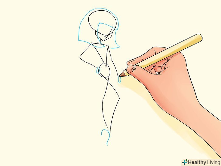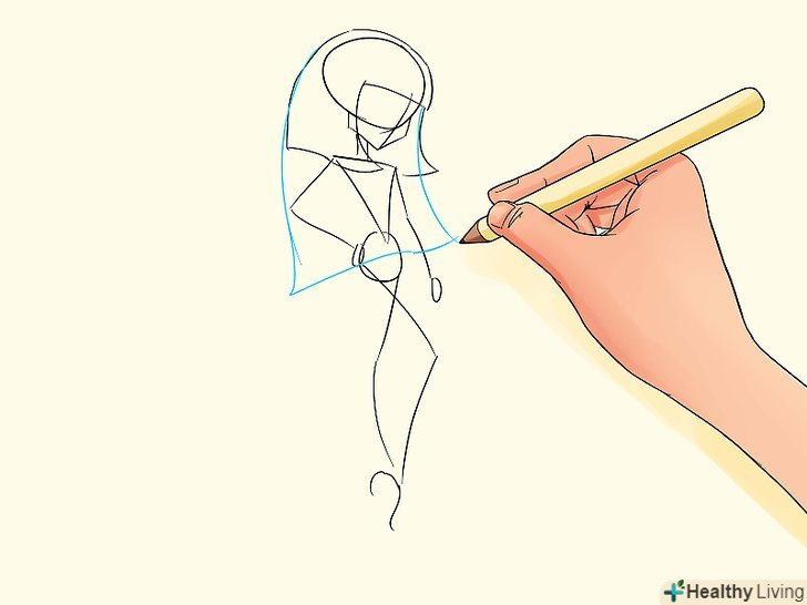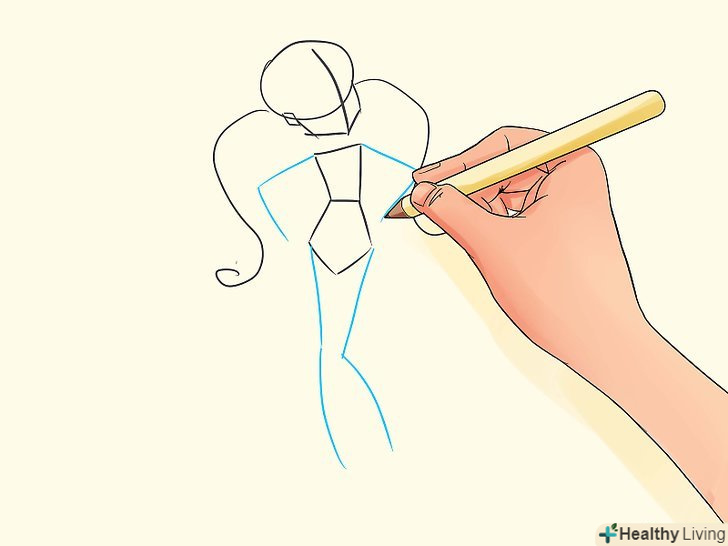 Додайте шию і стегна.- Намалюйте коло біля вершини трикутника для стегон.