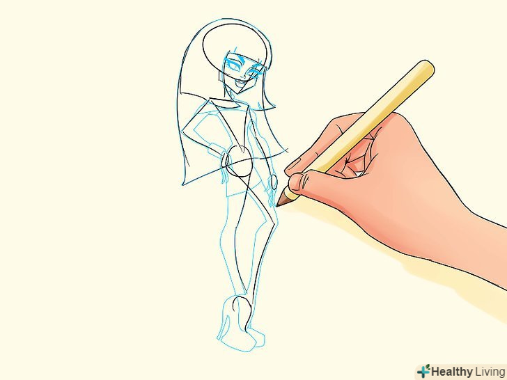 Зітріть олівцеві лінії начерку і додайте деталі.- Можете додати такі деталі, як прикраси і різні аксесуари. Не забудьте додати вії і кришталик ока (2 кола, що перекривають великий).