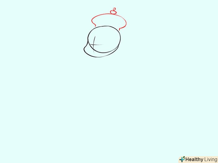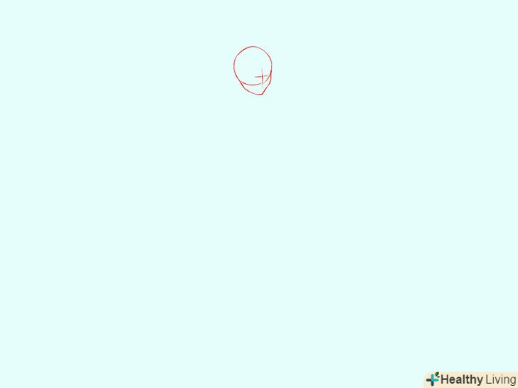 Намалюйте коло і підборіддя під ним. на правій стороні обличчя проведіть дві допоміжні лінії хрест-навхрест.