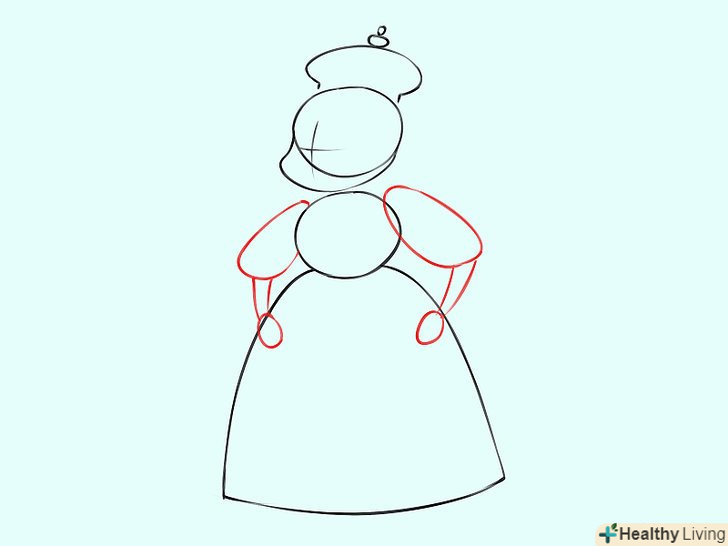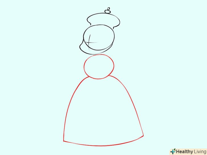 Намалюйте коло під головою (верхня частина тулуба) і спідницю у формі дзвону.