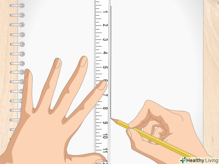 Намалюйте посередині листа вертикальну пряму лінію. при цьому лист можна розташувати як вертикально, так і горизонтально. Не натискайте на олівець сильно-це буде допоміжна лінія. Не забудьте залишити невеликі зазори між кінцями лінії і верхнім і нижнім краями листа, щоб додати деякі деталі пізніше. [10]