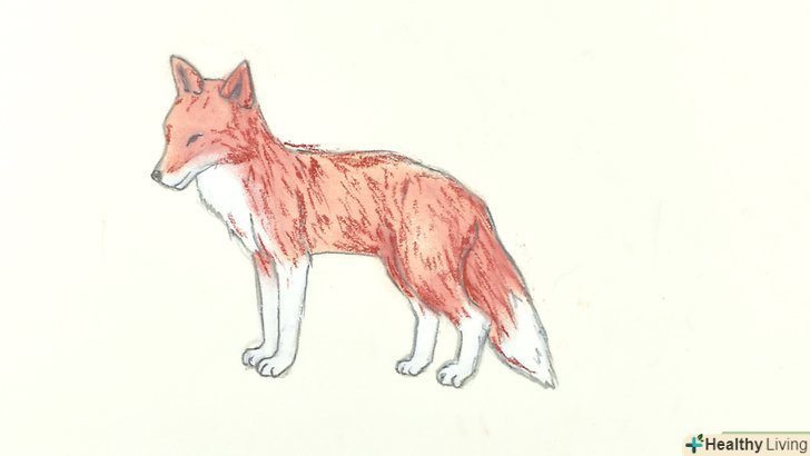 При бажанні розфарбуйте малюнок, щоб завершити його. зробіть так, щоб нижні частини лап, нижня третина хвоста, передня частина грудей і нижня половина морди мали білуватий відтінок. Шерсть лисиці можна розфарбувати червоним, помаранчевим або коричневим кольором, але натуральніше всього буде виглядати відтінок «паленого апельсина». [10]