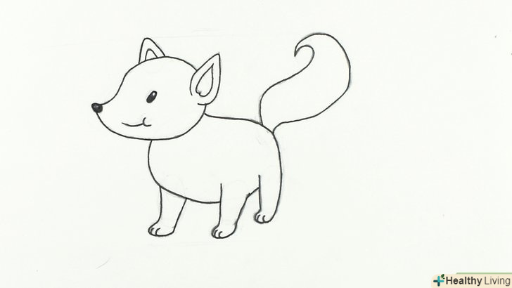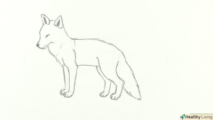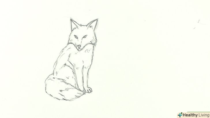 Наведіть деталі ручкою і зітріть позначені олівцем загальні контури. іншими словами, намалюйте більш чітко тулуб, лапи, хвіст, голову і морду лисиці. Після цього зітріть початкові овали, якими ви позначили загальні контури тварини. [9]- Якщо ви наносили олівцем тонкі лінії, стерти їх не складе ніяких труднощів.