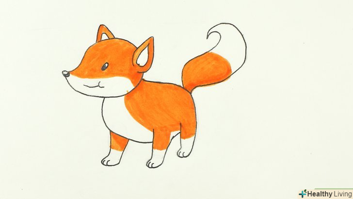 Розфарбуйте малюнок, щоб завершити його. добре підійде колір «паленого апельсина», хоча Лисицю з мультфільму можна розфарбувати і більш червоним відтінком. Додайте білуваті ділянки на грудях, морді, хвості і нижніх частинах лап. [26]