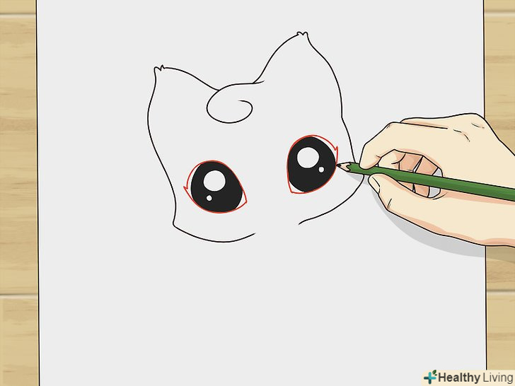 Намалюйте очі, як показано на зображенні. вони в стилі тварин, так як їх малювати набагато легше, ніж малювати справжні очі кішки. Також з ними кішка виглядає набагато миліше.