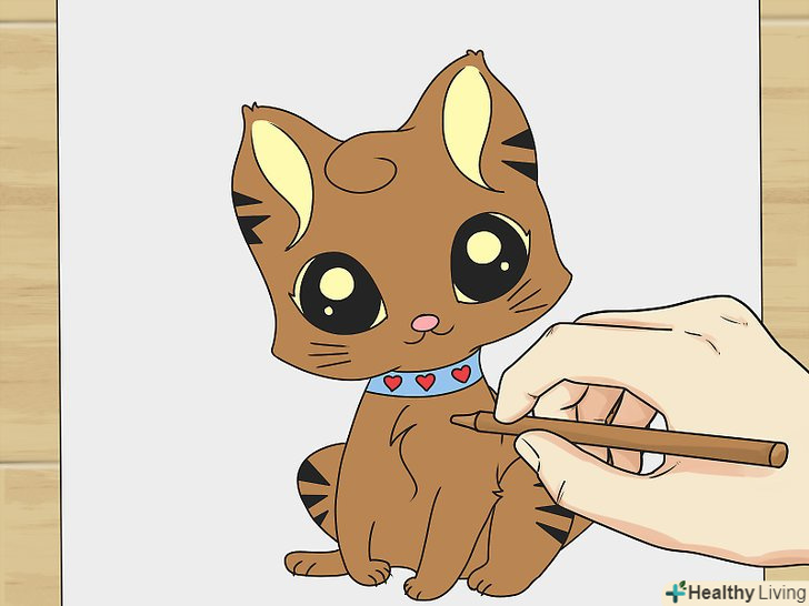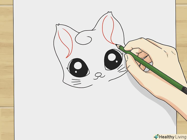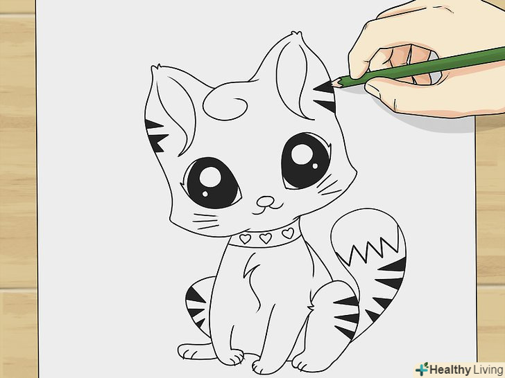Додайте такі деталі, як але, рот, вуса і колір очей, чорний. Будьте креативні! Можете додати ікла в роті або риб'ячі хвіст? А як щодо хвилястих вусів, якщо ви малюєте хуліганську кішку?