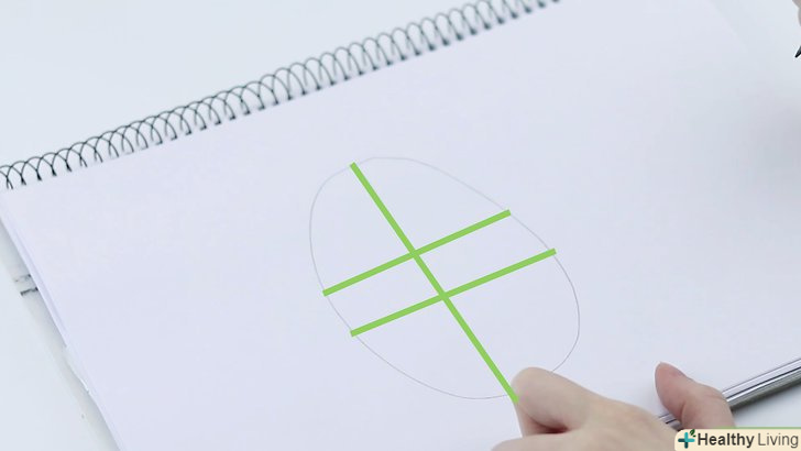 - Для очей намалюйте мигдалеподібні овали по центру між паралельними лініями.