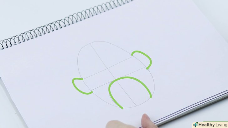 - Намалюйте два овали вух. Прорисуйте деталі вух або ж просто додайте по дузі всередині вуха.