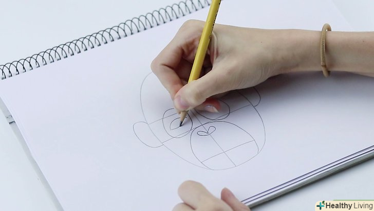 - Намалюйте коло і овал тіла з другим овалом всередині.