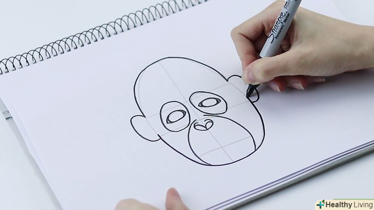 - Намалюйте 2 овалу з боків голови для вух. Додайте ще овал внизу голови для морди.