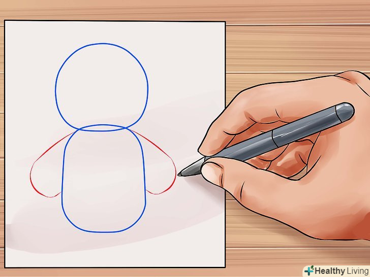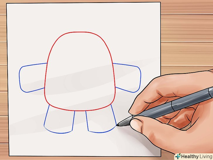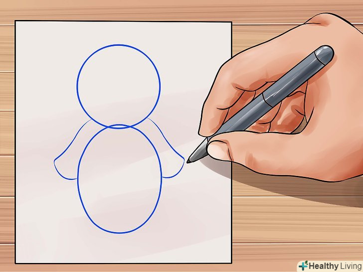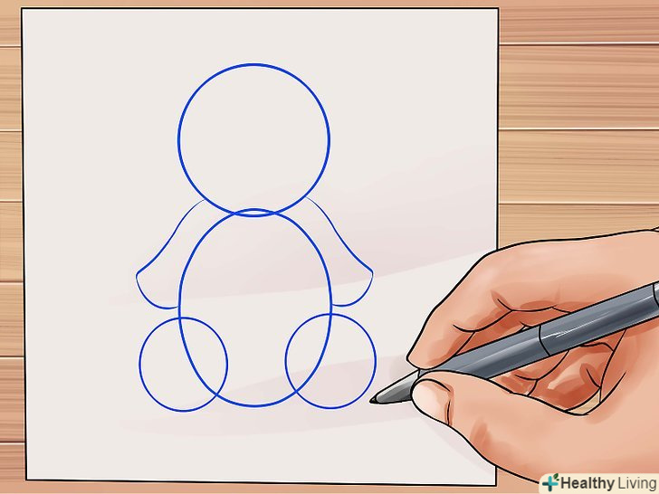 Намалюйте коло для голови плюшевого ведмедика. намалюйте прямокутну форму з гладкими кутами і з'єднайте її з колом для тулуба ведмедика. Це буде служити основою. lt;