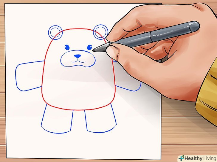 Додайте вуха, використовуючи два маленьких кола з кожної сторони голови. Намалюйте широке коло на голові ведмедя для рила.