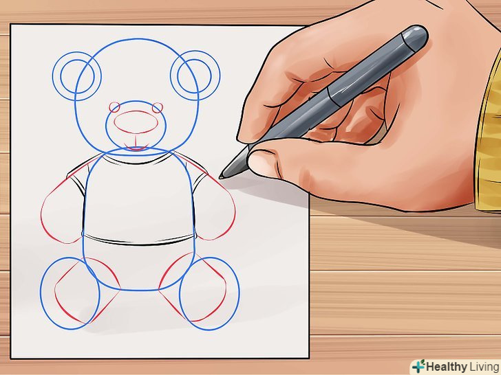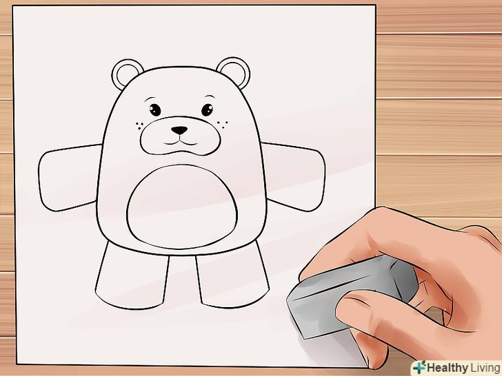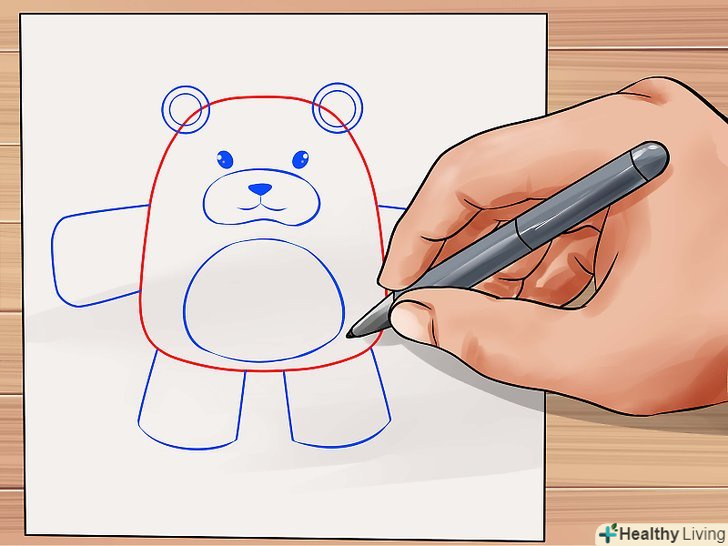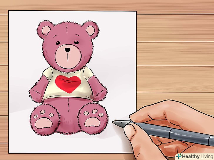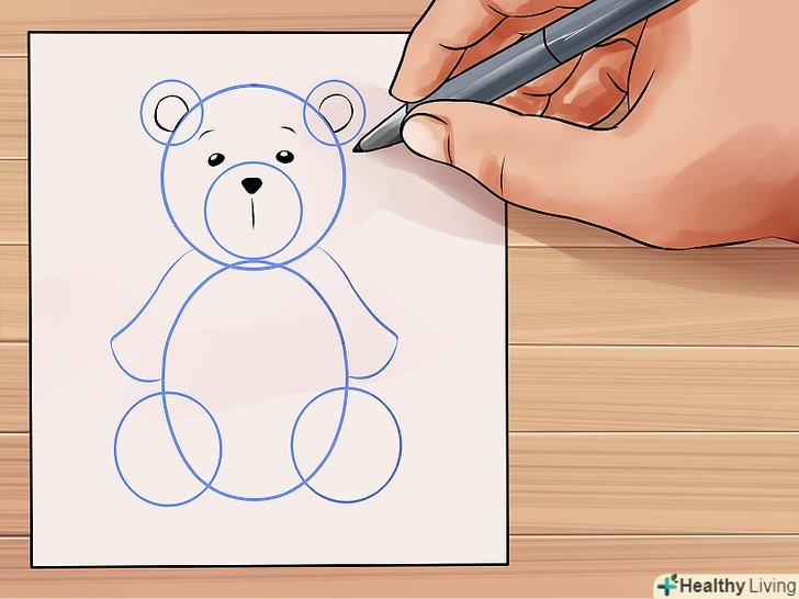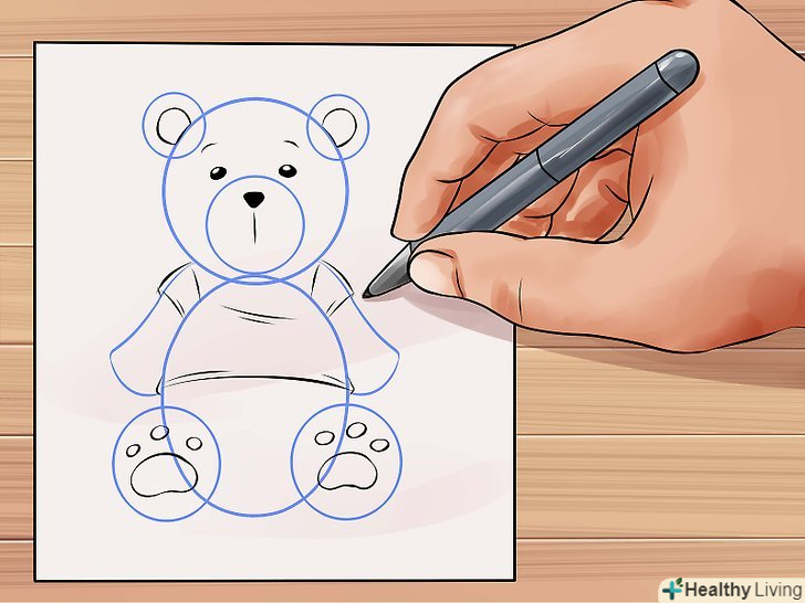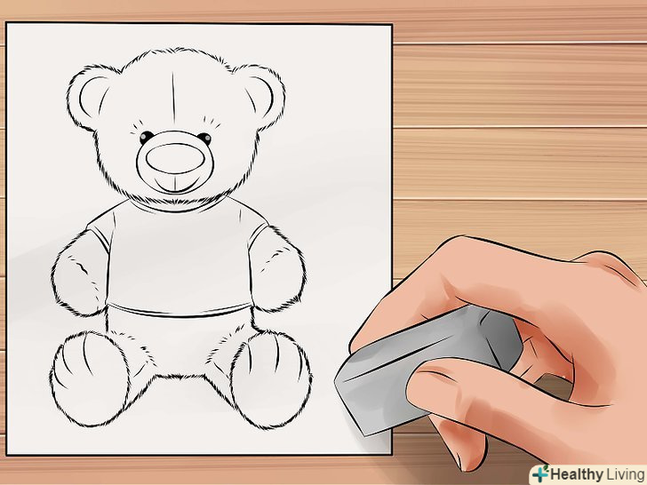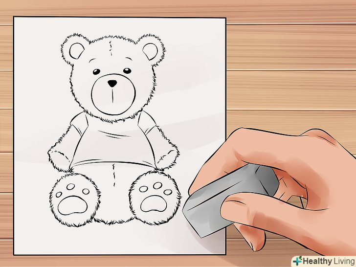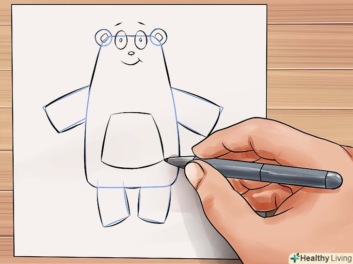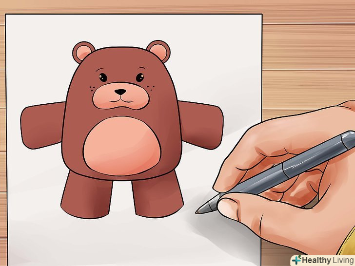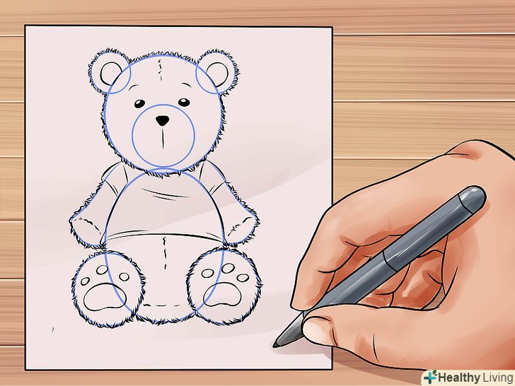 Зробіть так, щоб ведмідь виглядав пухнастим, використовуючи короткі штрихи при промальовуванні тулуба. Додайте кілька ліній там, де зазвичай розташовані шви плюшевих ведмедів.
