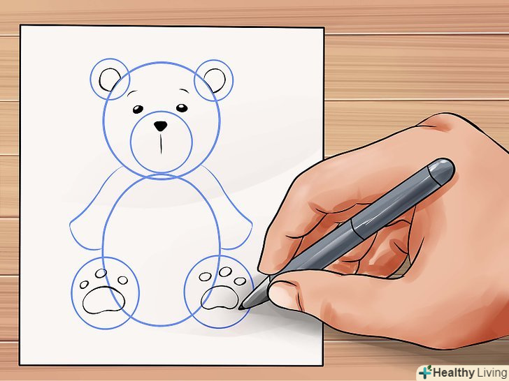 Намалюйте два невеликих кола під овалом для ніг ведмедя.