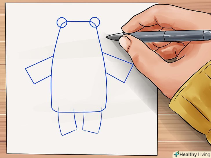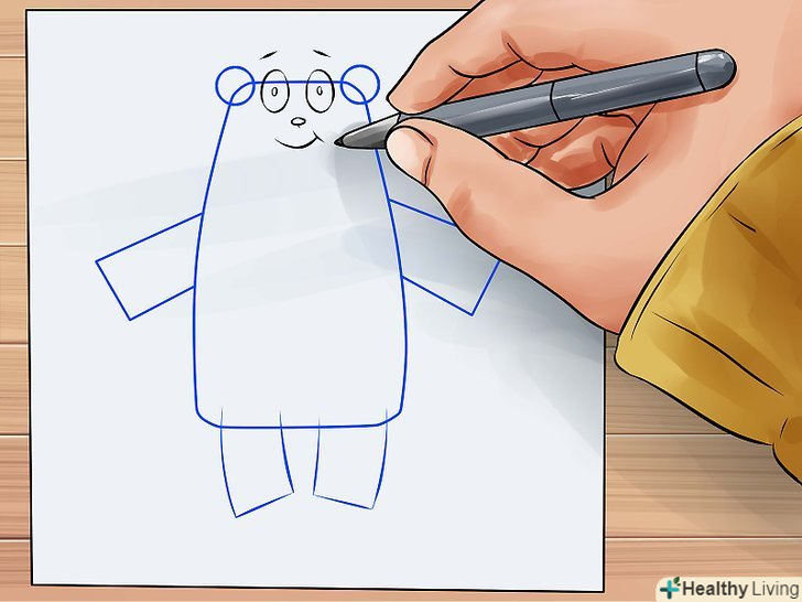 Намалюйте маленькі прямокутні форми з гладкими кутами, з'єднані з основою прямокутника, для лап ведмедика. намалюйте кола, з'єднані і пересічні з маленькими прямокутниками, для отримання кінцівок ведмедика.