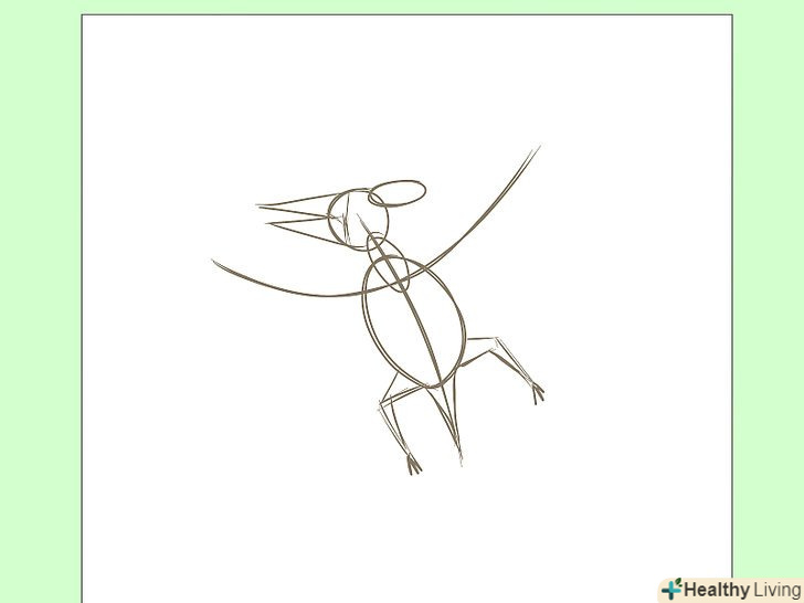 Намалюйте ескіз шиї і тонкого тіла, використовуючи овали. додайте ноги і маленький хвостик.