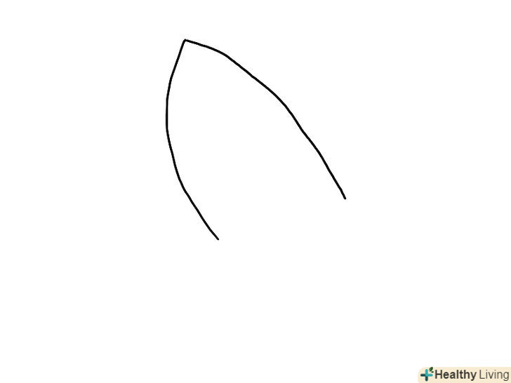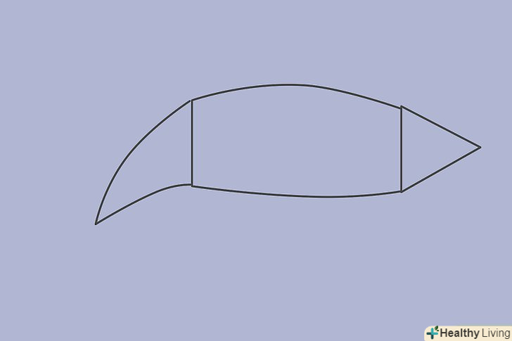 Намалюйте трикутник з вершиною спрямованої вправо. Просуньте його двома злегка вигнутими лініями і закінчіть вертикальною лінією зліва. З лівого боку малюнка намалюйте вигнутий трикутник з вершиною, спрямованої вниз.