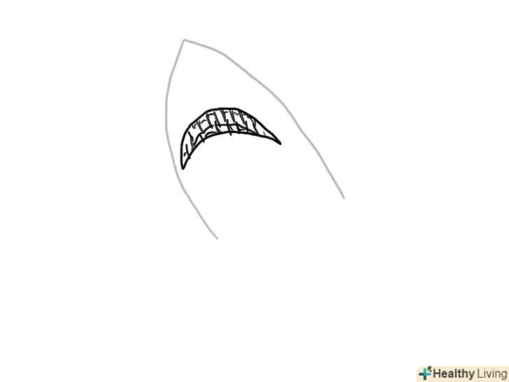Намалюйте рот акули. Акули відомі своїми гострими зубами, ви можете намалювати зуби за допомогою трикутників.