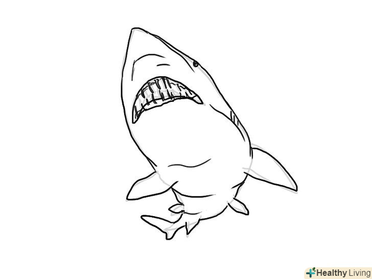 Намалюйте голову акули. додайте очі, ніздрі і рот.