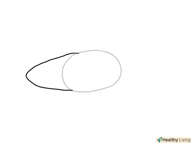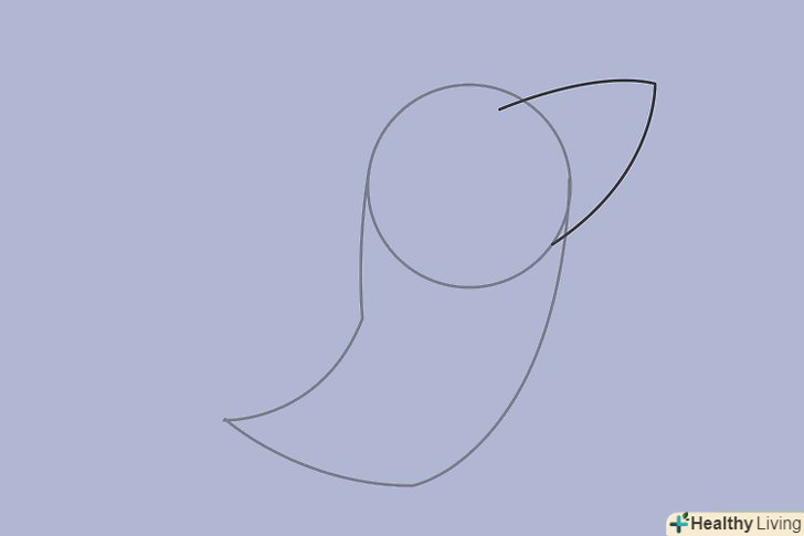 Намалюйте коло, нижче нього додайте вигнуту лінію, спрямовану вліво, з загостреним кутом.
