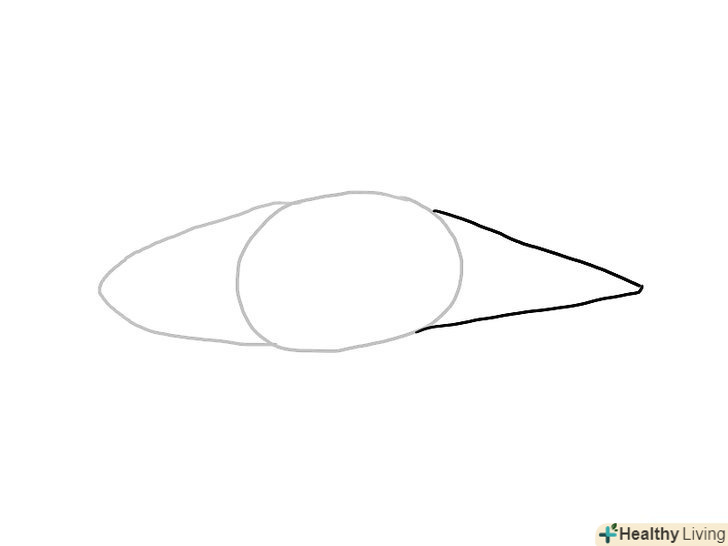 Намалюйте дугу з гострим кінцем з лівого боку овалу, це буде голова акули.